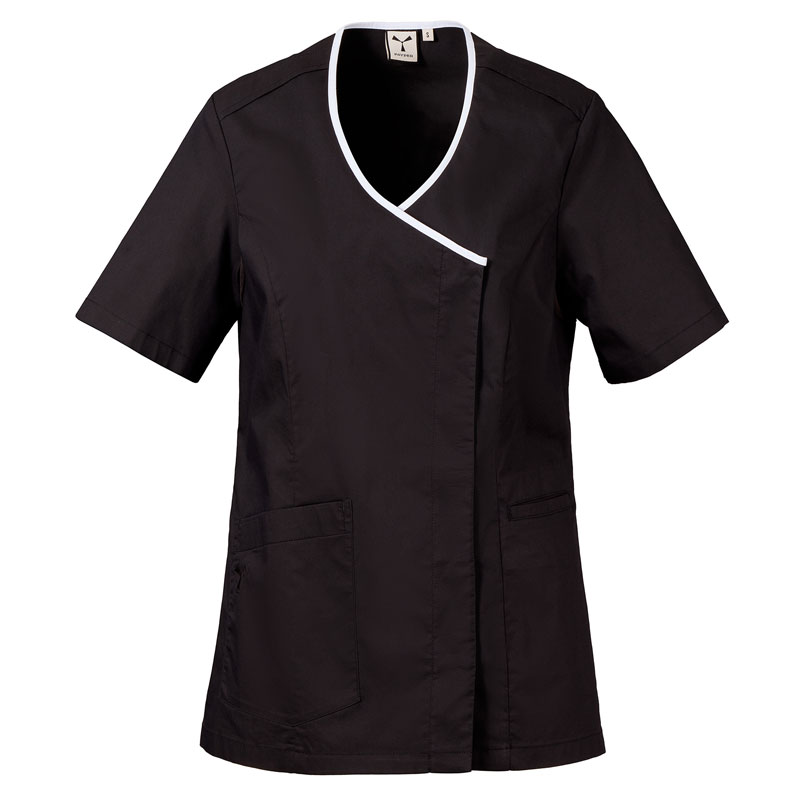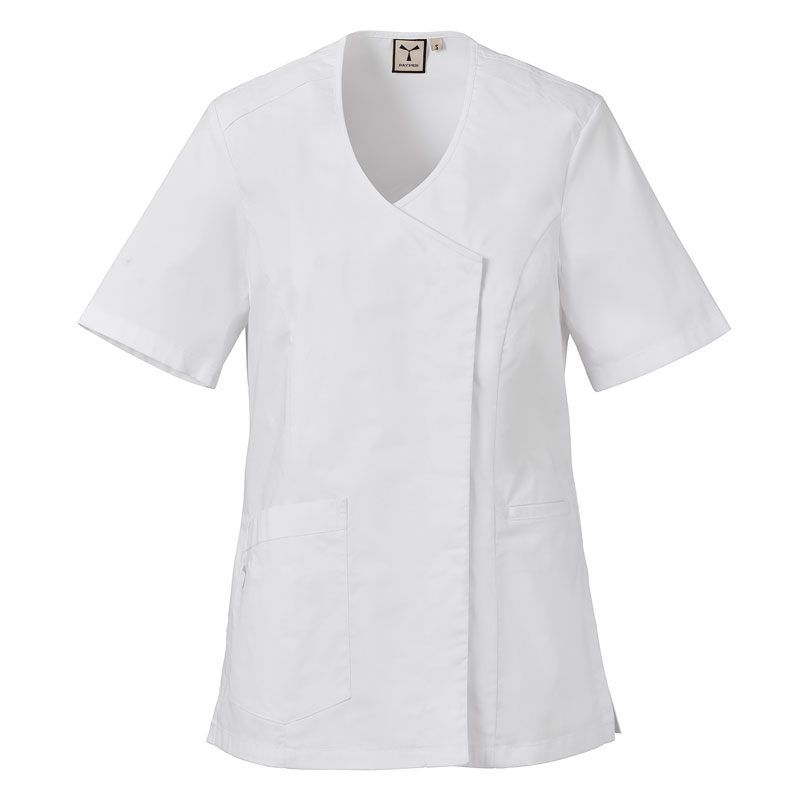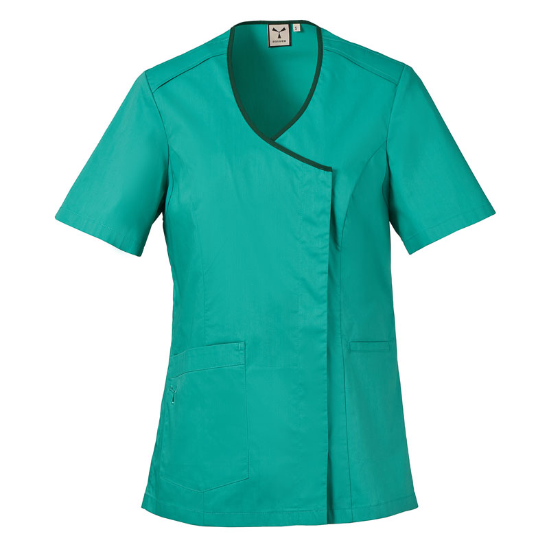 Blouse femme à manches courtes, réalisée en popeline de coton, polyester et Lycra® T400®, avec d’excellentes propriétés élastiques et respirantes.