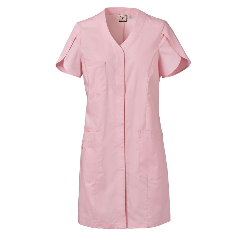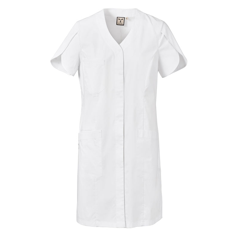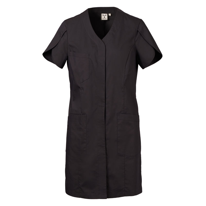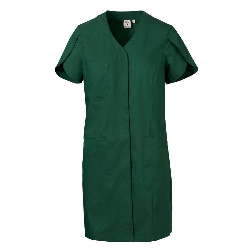 Blouse femme à manches courtes forme tulipe, avec col en V, réalisée en popeline de coton, polyester et Lycra® T400®, avec d’excellentes propriétés élastiques et respirantes.