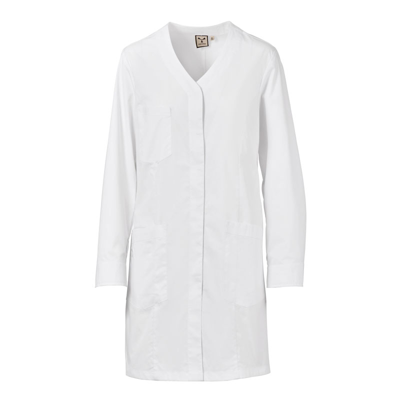 Blouse longue pour femme, avec col en V, réalisée en popeline de coton, polyester et Lycra® T400®, avec d’excellentes propriétés élastiques et respirantes.