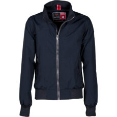 Blouson homme à zip de 8 mm en plastique avec curseur en métal, capuche repliable, poignets réglables, deux poches latérales zippées, une poche de poitrine. Intérieur : rembourrage et micropolaire en contraste.