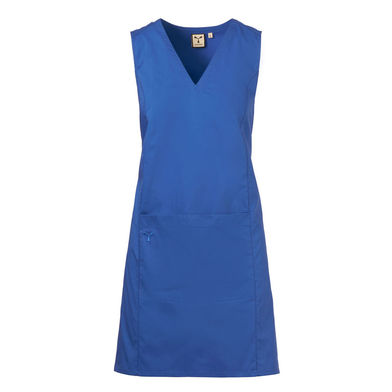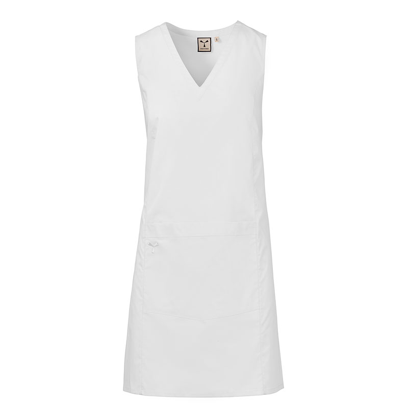 Casaque femme sans manches, avec col en V, réalisée en popeline de coton, polyester et Lycra® T400®, avec d’excellentes propriétés élastiques et respirantes.