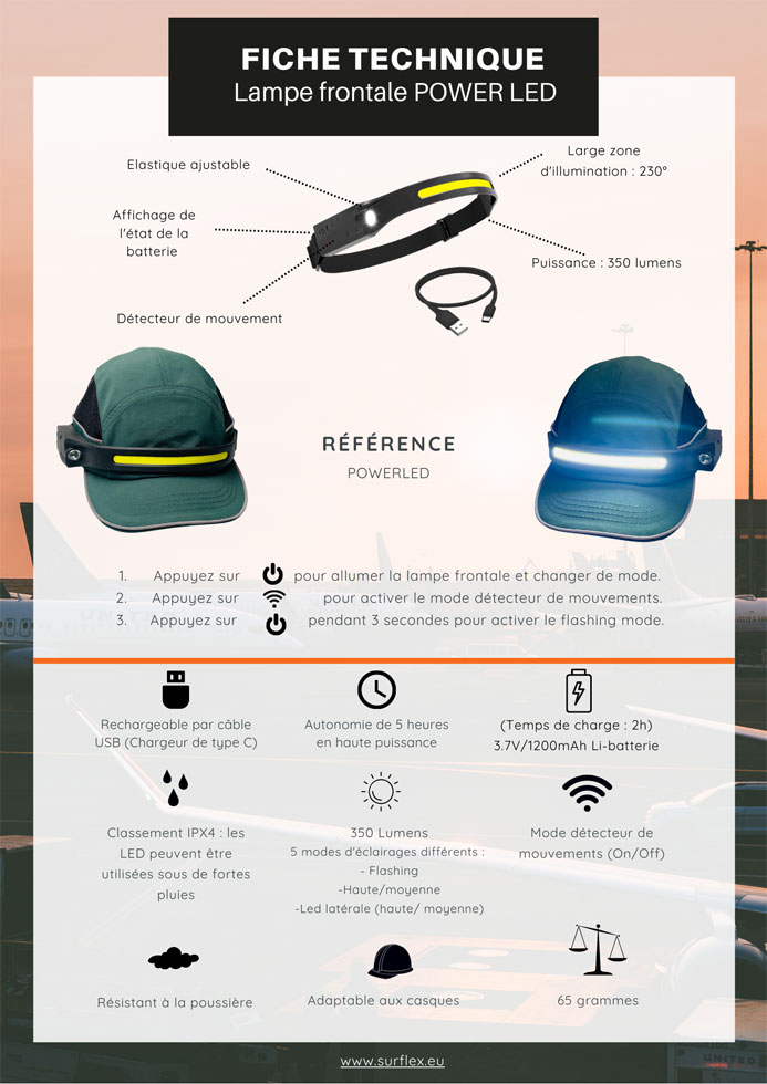 2 LED : une se situe sur le devant reprenant la largeur du front et une sur le côté gauche pour que l’utilisateur choisisse en fonction de la situation le mode d’éclairage le plus adapté.